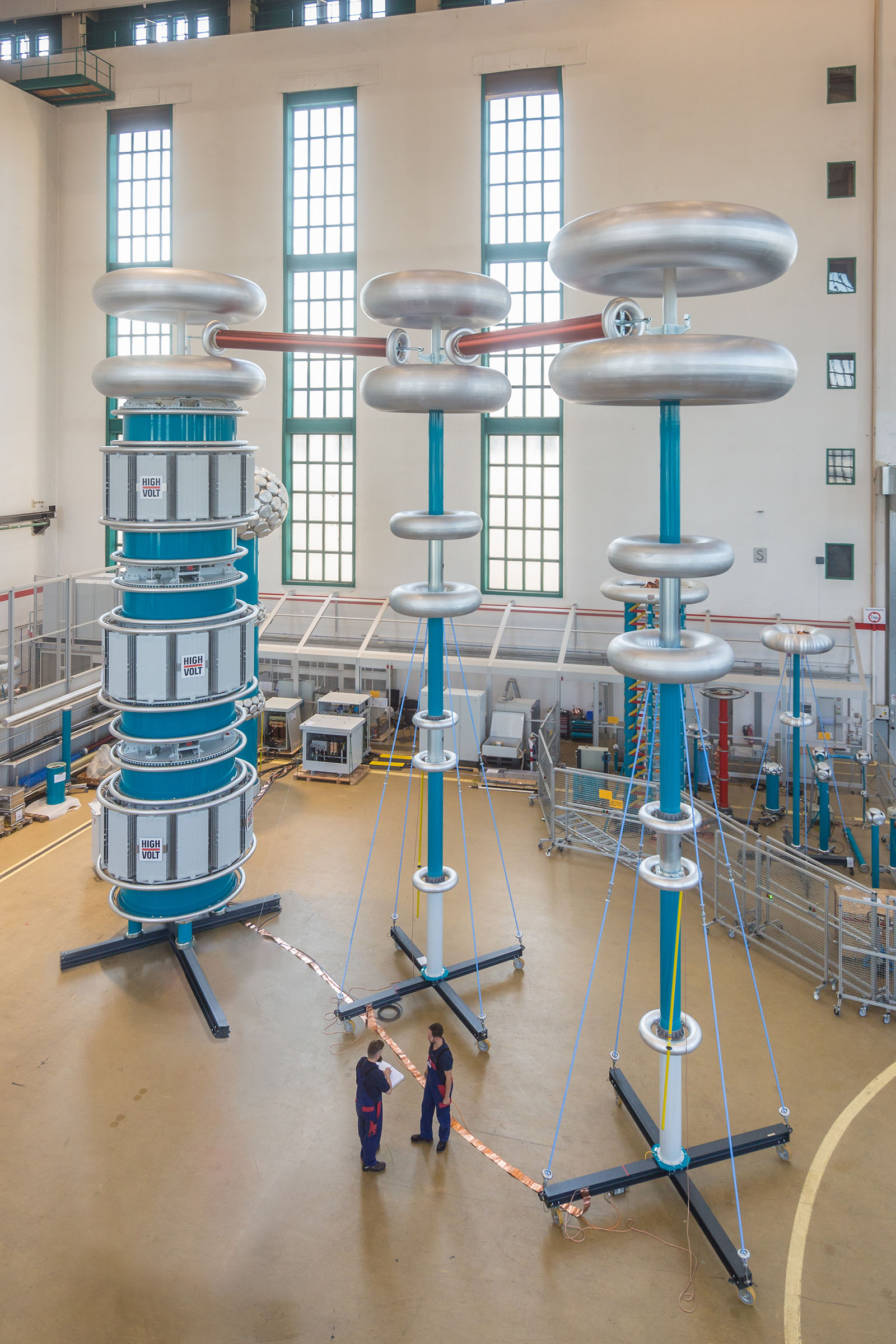 - Für die angelegte Spannungsprüfung von Leistungstransformatoren bis 1600 kV Prüfspannung gemäß IEC 60076